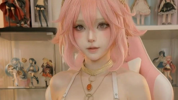 配资市场最简单三个步骤粉色长发飘逸如仙: 手办墙前的异域女神惊艳降临